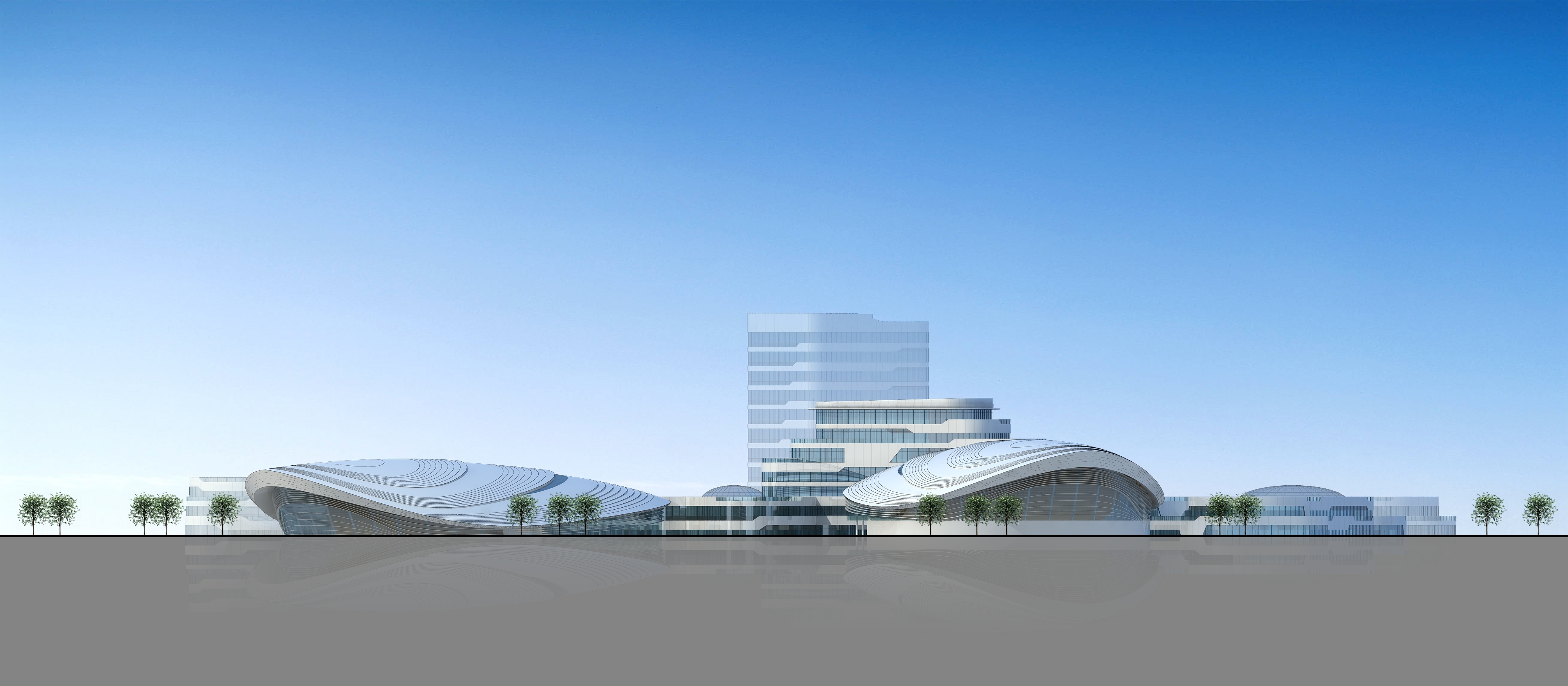 Architectural modeling design combined with the industrial nature of Auto expo center,simple modern style,The free horizontal lines outline the three-dimensional and rhythmic feeling of the building ,and combine the building with the roof garden through the treatment of the terrace。