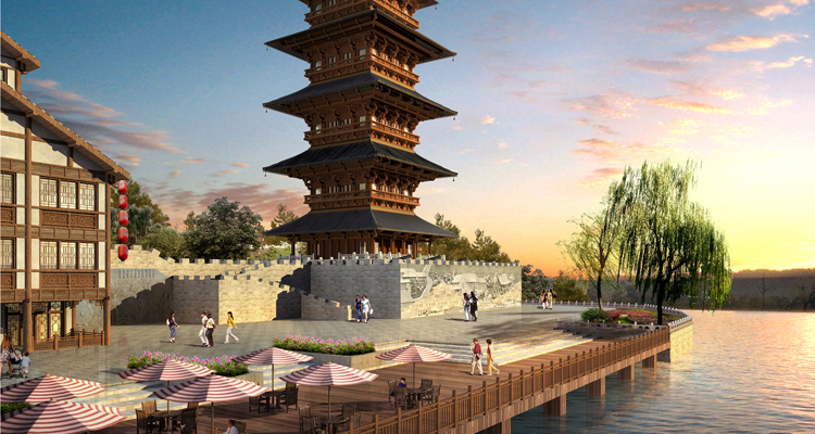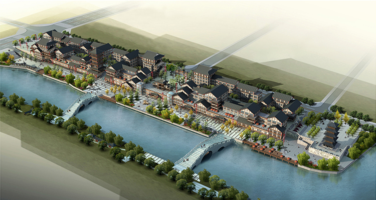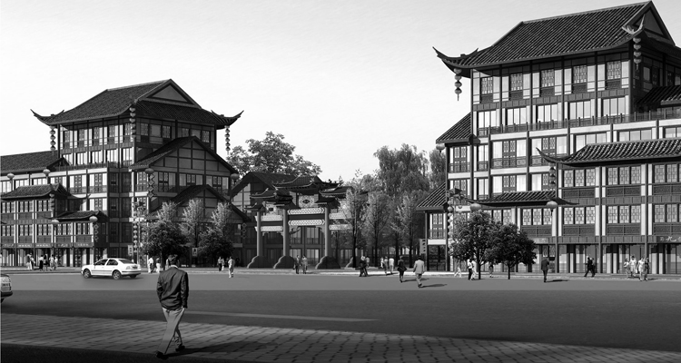 The project is in the north of government of Nanchuan district, belonging to the commercial and administrative core area of new district. By using the natural vertical difference, we plan the riverside commercial street, central pedestrian street, tourism and commercial plaza along the street. We improve the value of development by increasing the proportion of commerce and first floor shops. The style of the architecture is Song Dynasty residence, thus we create an antique street with the feeling of Qinhuai River.