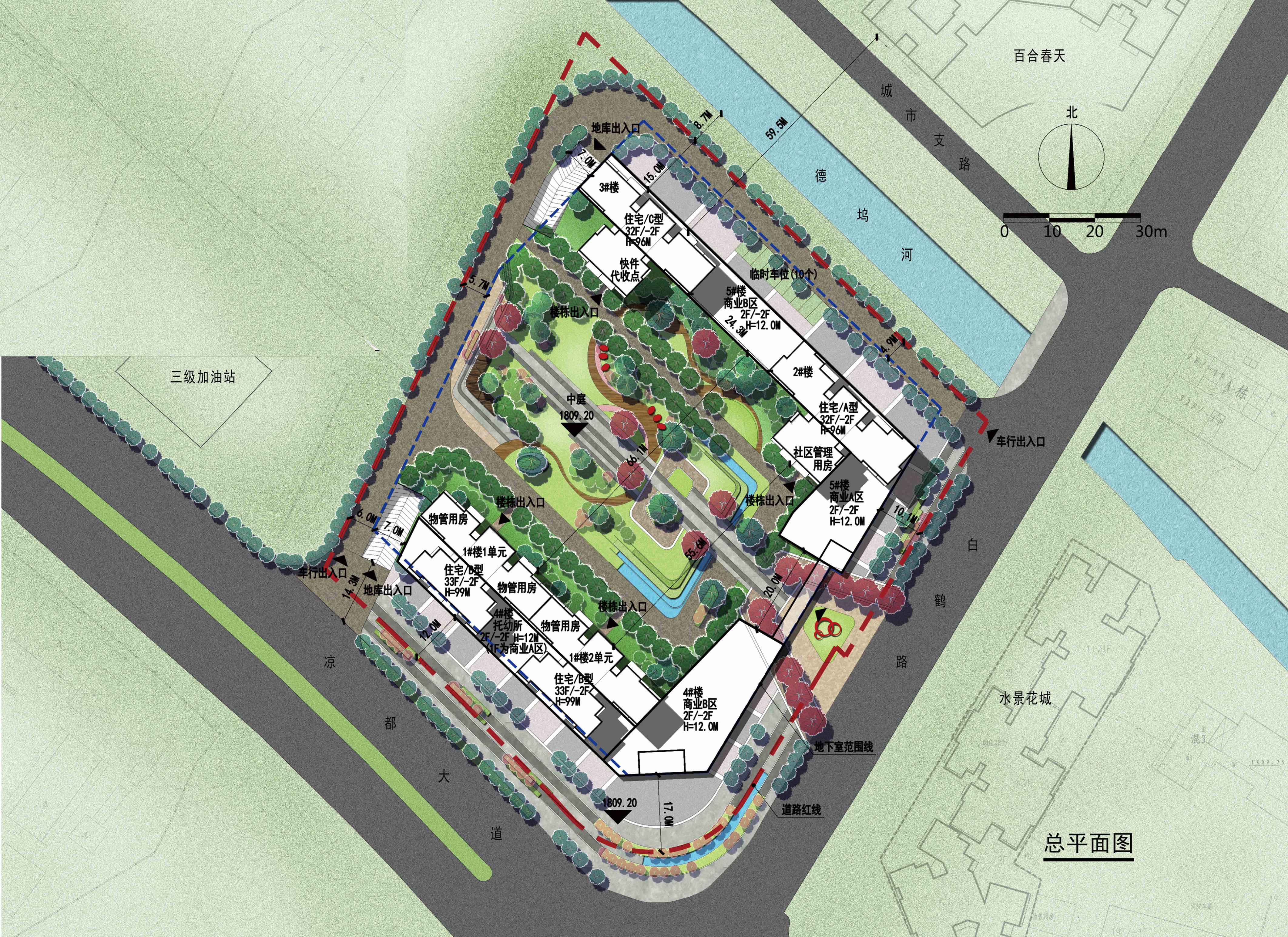 The project is located in liupanshui city, guizhou province. The project land is small and the site is very flat, but it is located in the core area of zhongshan district, with good geographical advantages. The design USES the modernism technique, unifies the peripheral architectural style and the color, forms a coordinated, the natural whole area. Due to the small size of the land, the landscape of the residential area adopts a multi-level expression, and finally forms a small and exquisite residential area.