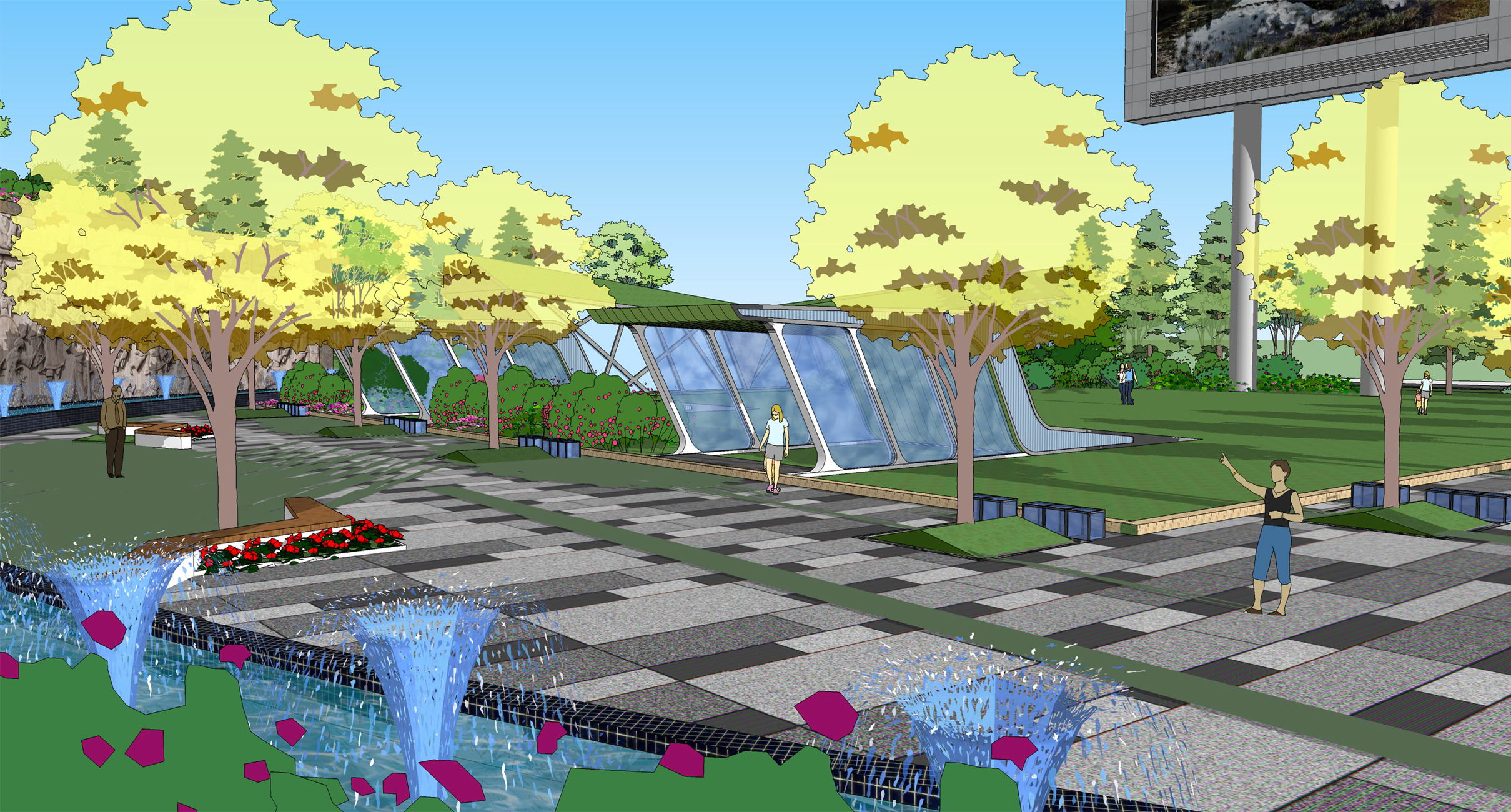 In landscape design, we combine the modern design techniques with the traditional elements. Based on the modern pavement, streamlined shape and rich color changes, we try to make the landscape full of local characteristics and culture,and make it to be a square with cultural extension, that is "human Hejiang, minor in ancient and modern, modern Hejiang, prosperity" .