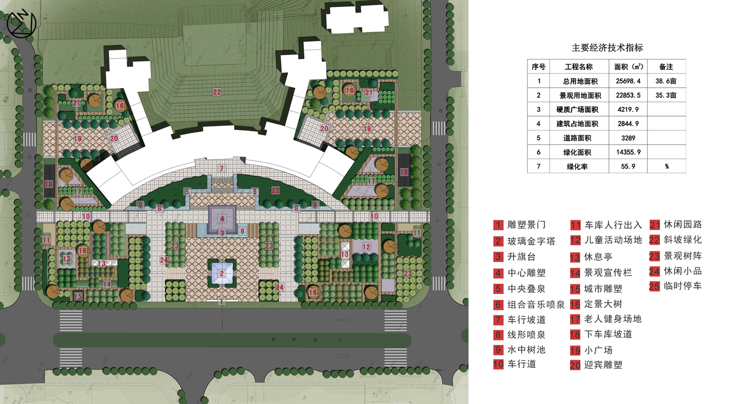 The central idea of the He Jiang municipal government square is "Chinese knot". When we do the design, we implement the following 3 keynote, "He Jiang knot", "culture knot" and " eco-knot ". The design emphasizes sport, gartherting and exchange function. And make the people as the center of Chinese knot, than extend it to both the west side and east side with cultural He Jiang and ecological He Jiang, in order to create a harmonious and ecological city municipal plaza based on local nature and people-oriented.