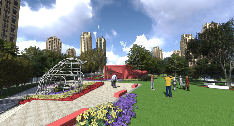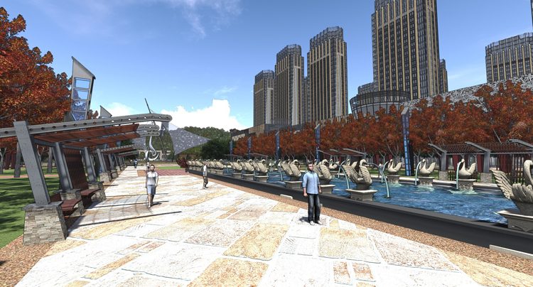 Based on the current planning roads, we divide the whole project into 7 parts. And we use a visual corridor to connect the other 6 parts. The central river separates the site into west and east two parts. Each part has its own water landscape to create a landscape layout of “three belts, two axes and one corridor. The three belts are 3 water landscape, and the central river composes the rive landscape to improve the quality of the landscape, so the function radiate widly.