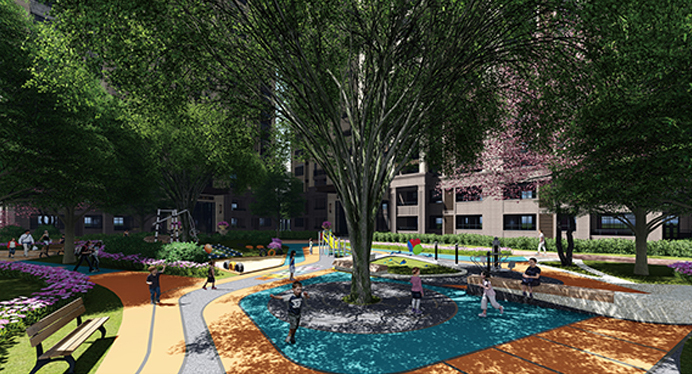 The entire design is consistent with the city's overall plan and the urban layout, architectural style, and landscape pattern of the adjacent section, and is coordinated with the using field current situation, function division, and spatial structure.