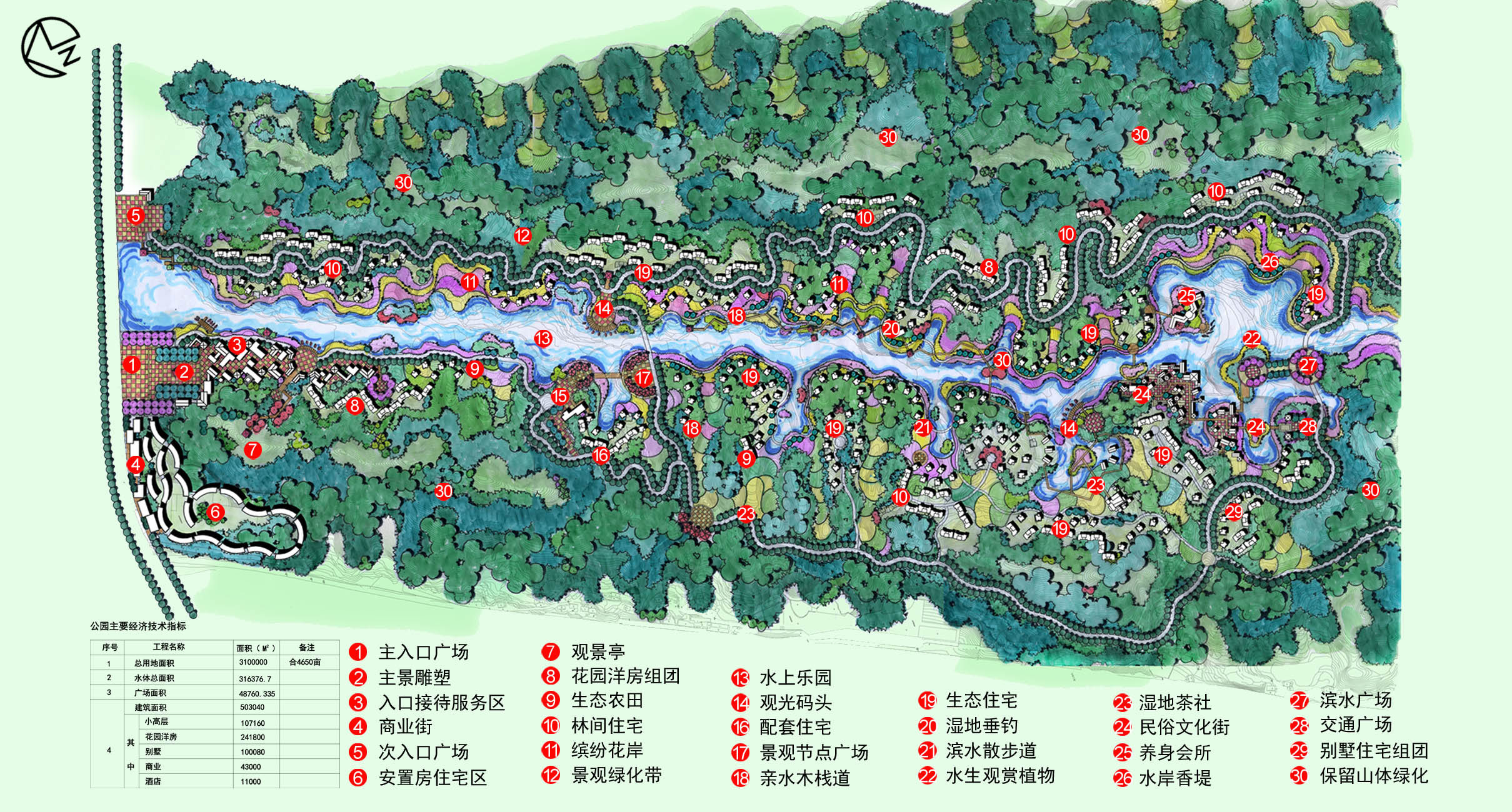 In order to cater to the springs and streams which is valuable in tourism development, the design of Yingshan Hu is going to be create as a new tourism real estate leisure area and ecological wetland area, combined with the surrounding traffic environment, the external development resources and natural conditions. According to the external resources and environment, the land value demand, and the existing natural conditions,the park is build by a hierarchical manner, and is divided into five parts, that is the entrance reception area, the resettlement housing area, water world area, wetlands experience zone, and folk cultural display area.