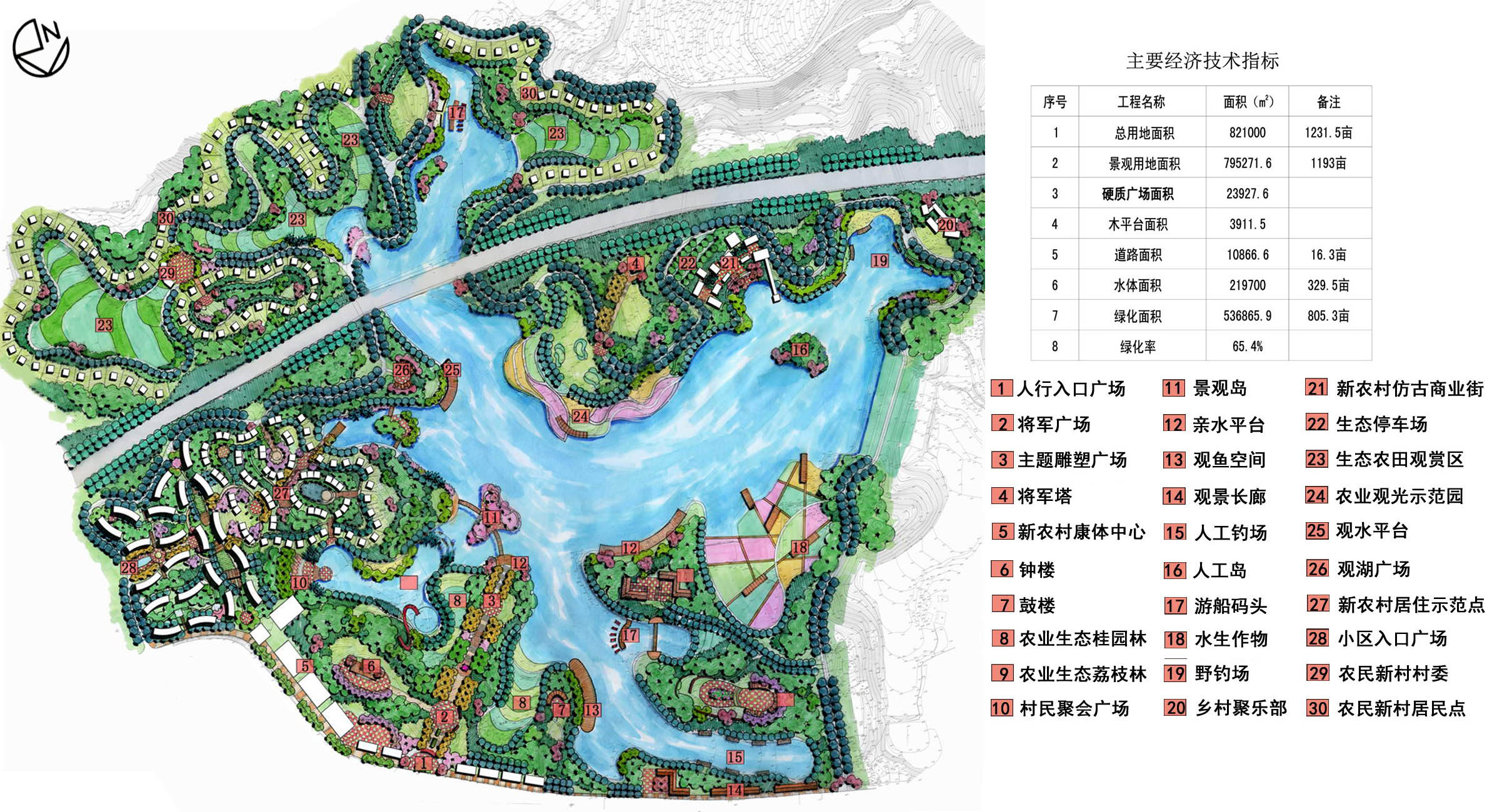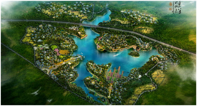 Jiangjun Lake scenic area is located in Fomeng town, Hejiang county, Sichuan province. The lake is surrounded by water on three sides, the site is flat and has an open vision and beautiful environment. The goal of the project is development and construction of new social country. The planning and design combine the architecture with landscape, and combine the nature with culture. According to the planning layout and functional partition for the site terrain, the project form with point , line, surface and ring. The function of the project is divided into 4 following parts, new rural settlements,