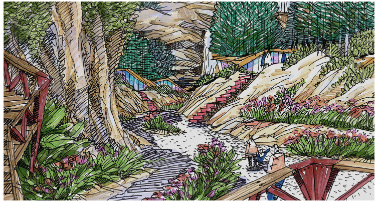 settlements, lake landscape belt, ecological farmland and wetland. And the construction of the Jiangjun lake scenic area is "one axis , two parts, seven groups". The planning takes full advantages of the excellent scenic resources, and uses poetic approach to create a landscape layout formed by "mountain, water, farmland and architecture". "Mountain" makes use of the existing mountain terrain to form the mountain landscape. "Water" takes advantage of the lake resource to make the water landscape. "Farmland" uses the existing farmland to renovate the existing farmland. "Architecture" is to create a building system with the characteristics of south Sichuan . We would like to display the new look of rural landscape by the above four means.