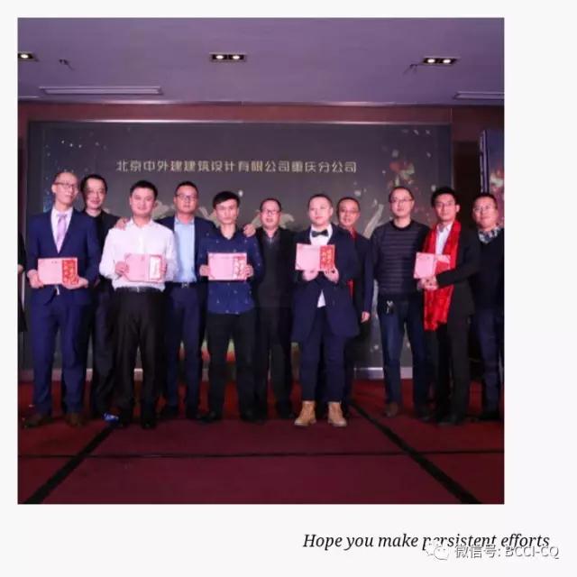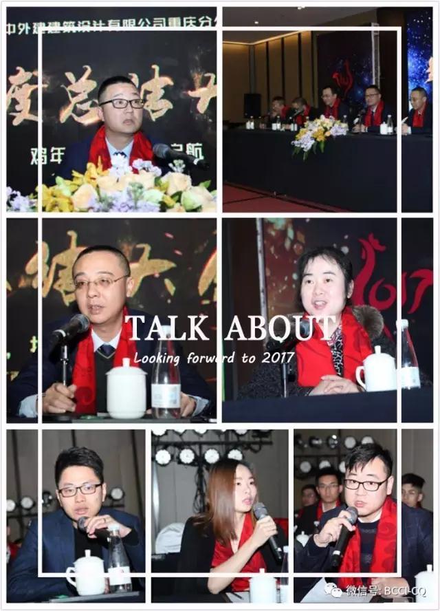 本次年會由重慶分公司建筑總監吳總主持,總經理譚琛領頭,各專業負責人肖總、唐總、龔總、樂總、張總和員工代表相續暢敘,給大家送上新年的祝福。在回顧總結中思考創新,為公司未來發展出謀劃策,鼓勁加油。
