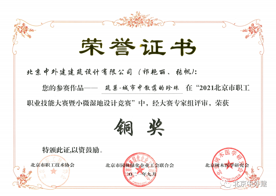 【獲獎】北京中外建榮獲2021北京市職工技能大賽暨小微濕地設計競賽銅獎