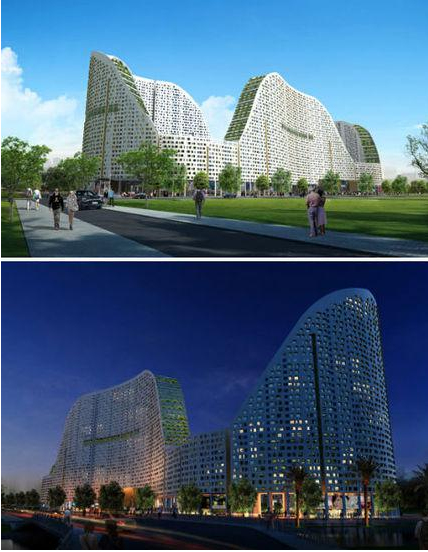 這是來自越南的又一座未來城市,巨大的滾軋曲面建筑結構更像是一個游樂場而非一座城市住宅建筑。目前正在修建中,這座復雜的建筑包含3100套公寓單元房、各種零售店鋪和公共場所等。設計者最大化建筑的采光度和通風效果,主要利用水泥和當地的石材建造。
